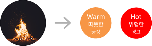 인간이 느끼는 색의 감성을 통해 색의 의미가 형성되고 사용자에게 인지되는 것입니다. 이렇게 색에서 느껴지는 감성으로 ‘따뜻한 색(Warm Colors, 난색)’과 ‘차가운 색(Cool Colors, 한색)’ 계열로 나누어집니다.