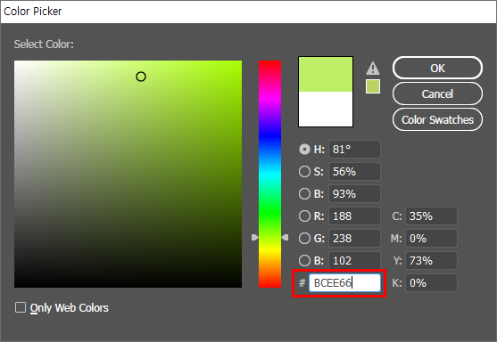 예를 들어 어도비(Adobe)사의 대부분 소프트웨어에서 제공하는 색상 피커(Color Picker)에서 이 헥스 코드를 입력/분석할 수 있습니다.