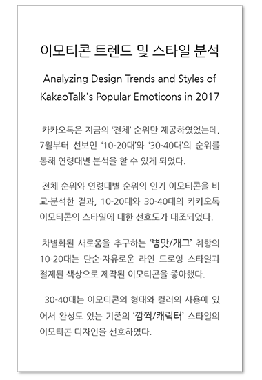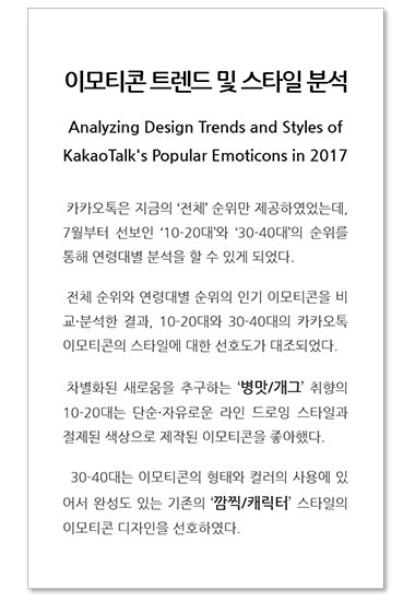 제목의 경우만 폰트를 다르게 적용한 레이아웃입니다. 처음에는 모든 글자에 “나눔고딕” 타이프페이스, 즉 “나눔고딕 (Regular)” 폰트와 “나눔고딕 Bold” 폰트를 사용했습니다. 마지막에는 제목에만 “나눔스퀘어 Bold” 폰트를 적용한 예입니다.