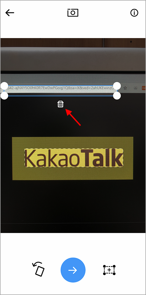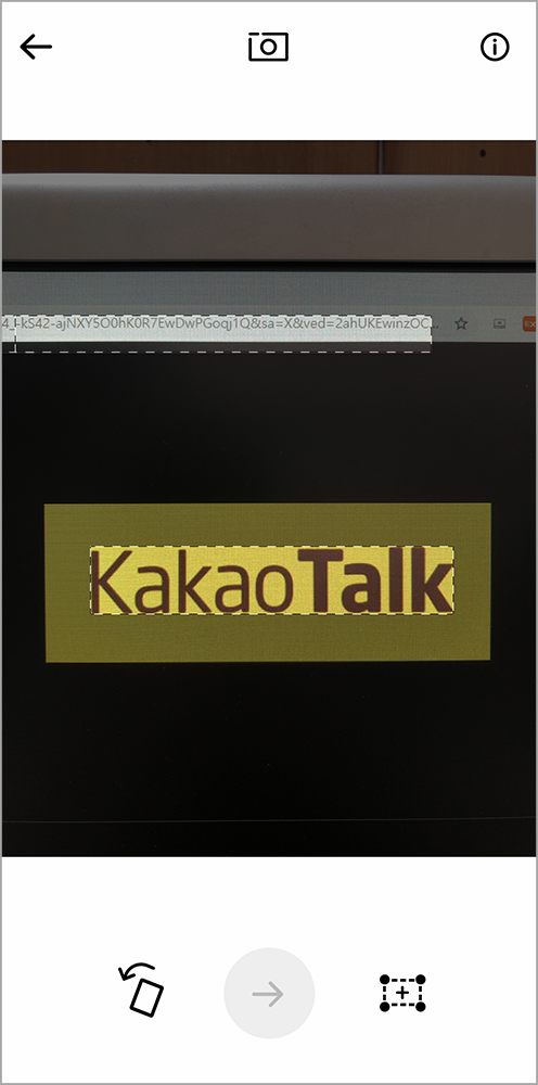 2) 사진 촬영 후, 앱에서 자동으로 선택 영역을 표시합니다.