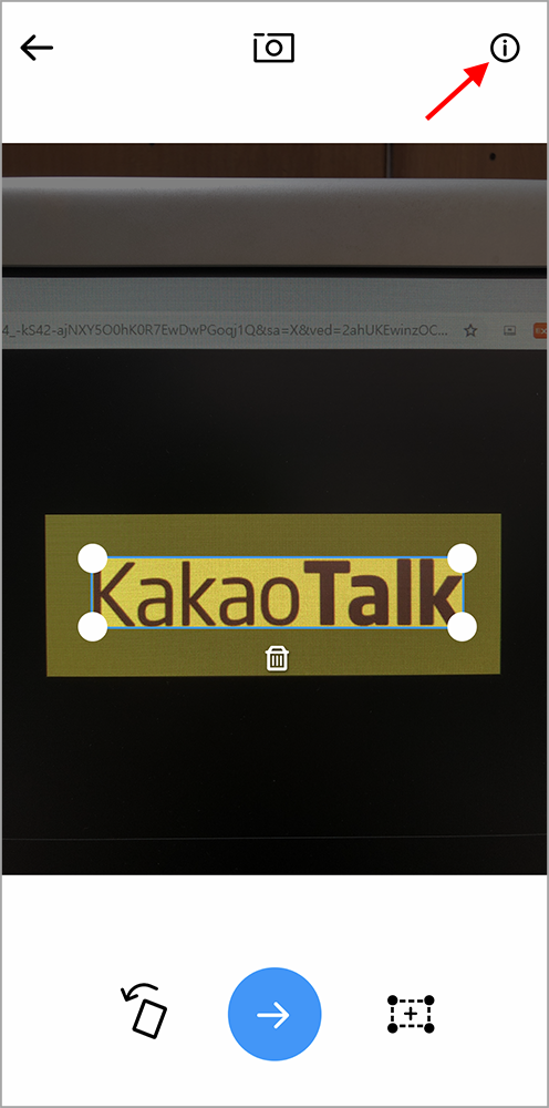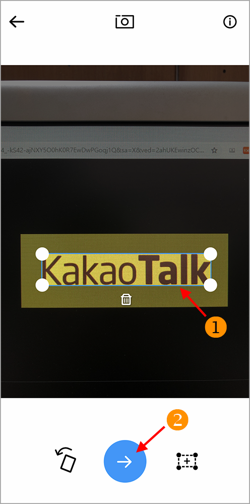 4) 필요한 영역을 선택하고 아래 검색 아이콘(→)을 탭하면 검색 결과가 나타납니다.