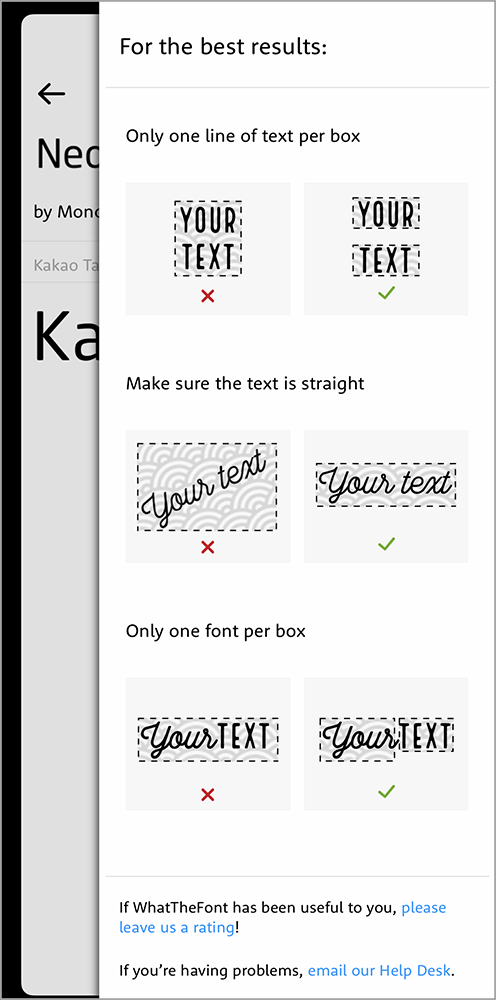 * WhatTheFont 앱 상단의 정보 아이콘을 선택하면 효과적으로 검색하는 방법이 나옵니다.