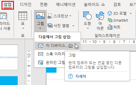 1) 삽입 > 그림 > 다음에서 그림 삽입에서 그림 파일이 저장된 경로를 선택합니다.
