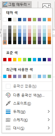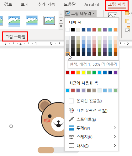 ❷ 그림 서식 > 그림 스타일 > 그림 테두리 선택 후, 테마 색을 선택합니다.